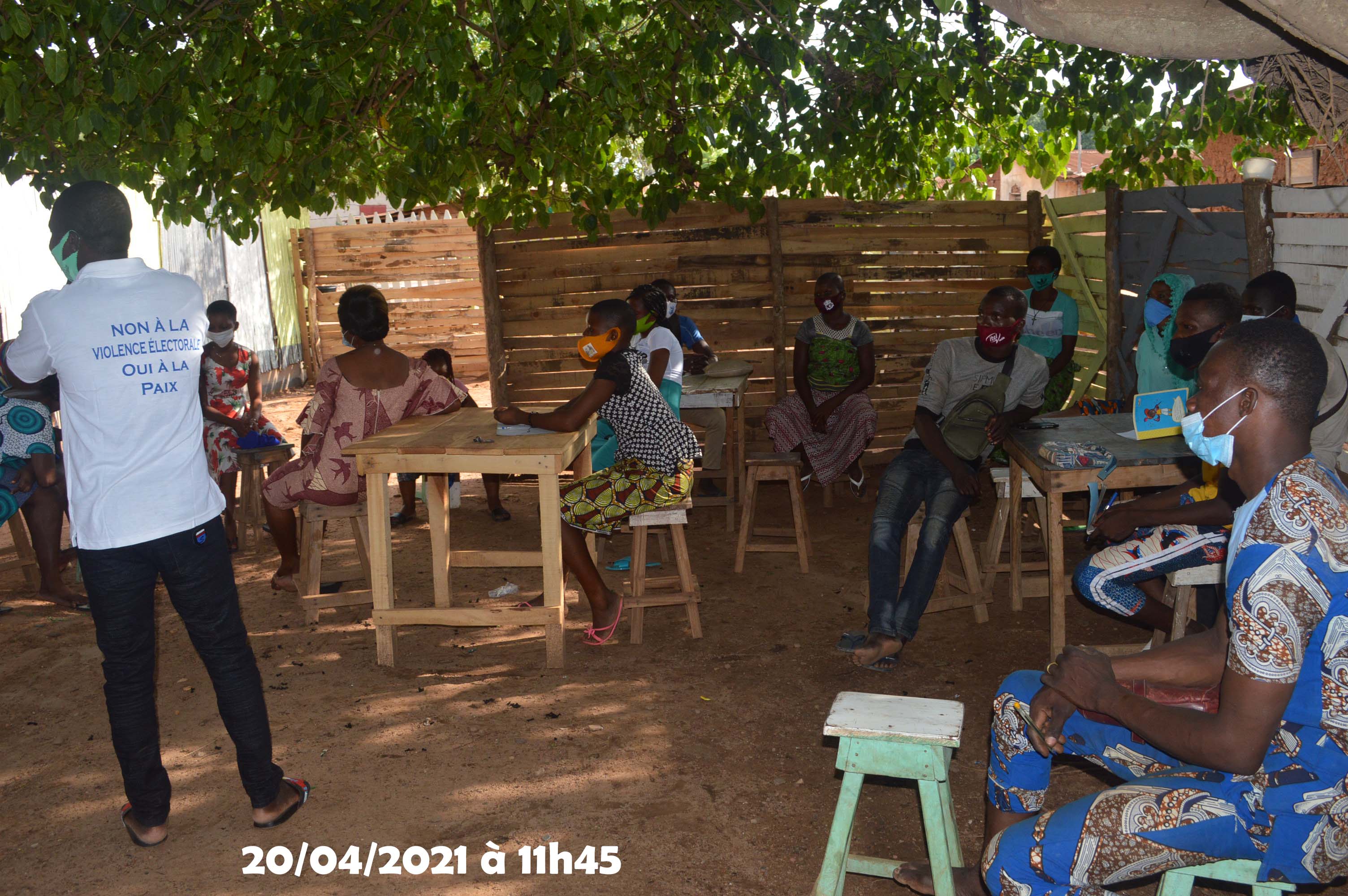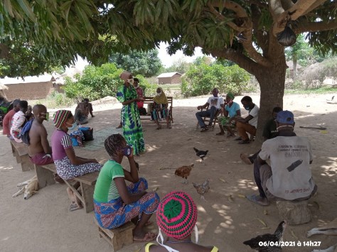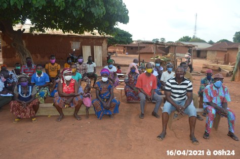 Les voies ont été libérées le 10 avril mais avec une psychose au sein de la population qui s’opposait à prendre part à des activités autres que leurs activités quotidiennes habituelles. Pour la mise en œuvre réelle des activités, les Chefs de villages ont joué un grand rôle. Ils ont contribué à la mobilisation des participants à ces séances de campagnes d’information et surtout rassuré les participants qui étaient extrêmement dubitatif quant aux activités. Pour ce faire, ils ont suggéré que des invitations individuelles ne soient pas envoyées car les populations seraient réfractaires à accuser réception en pensant qu’il s’agit de convocation de la police. En effet, après ces événements, les populations effrayées craignent les arrestations et s’abstiennent à prendre part à ces séances. Les quelques villages les plus éloignés ( au total 15) ont pu être favorable à la réalisation de cette activité dans la semaine d’après les élections c’est-à-dire la semaine du 12 au 19 avril 2021.